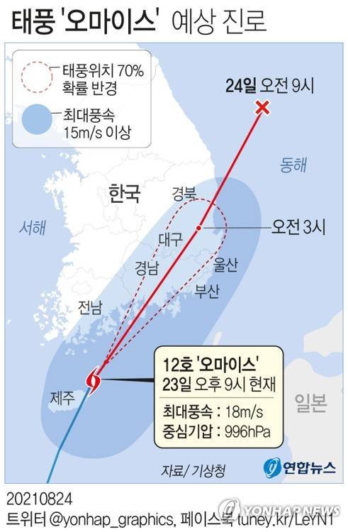 태풍 오마이스 : 2ynsryxwykxw M / 북상 중인 제12호 태풍 '오마이스'가오늘 밤 남해안에 상륙할 것으로 보입니다.