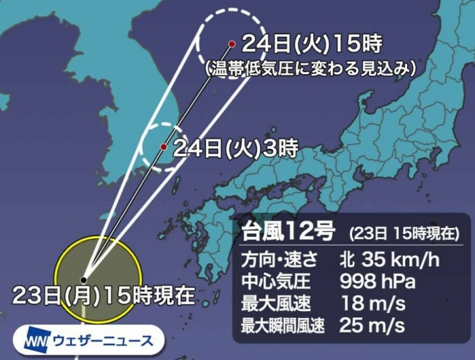 제12호 태풍 오마이스 경로는 오후보다도 더 오른쪽으로 바뀌었습니다.